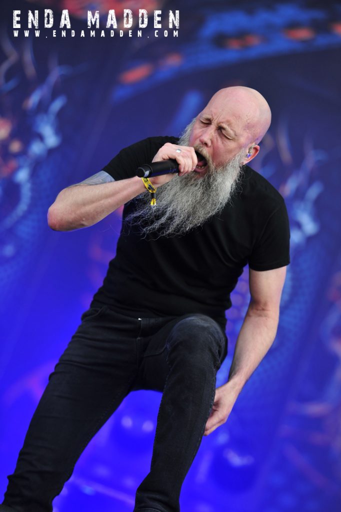 The sun is beaming and masters of the black T-shirt Meshuggah open proceedings with “Rational Gaze.” While Vocalist Jens Kidman enjoys the sun and comments “It’s a beautiful day for metal.” The brand of technical poly-rhythmic metal that Meshuggah play is both difficult at times and addictive in equal measure. It is also a testament to the band’s incredible technical abilities. Today’s set includes” Lethargica” and” Swarm” and closes with “Bleed” and “Demiurge.”